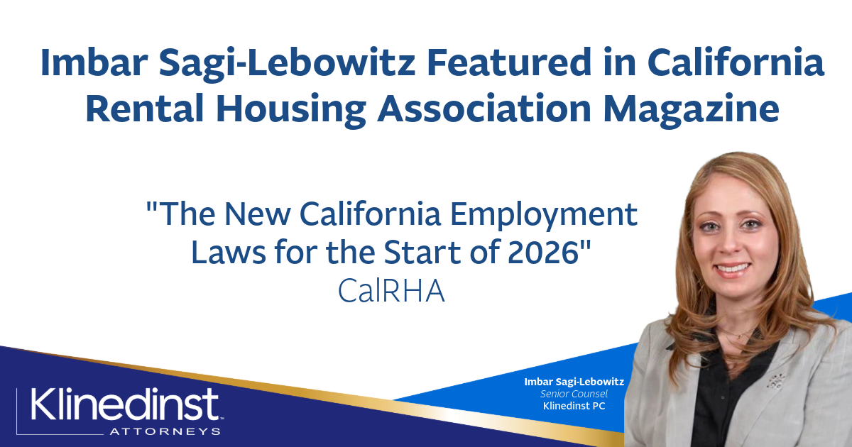Learn what rental property owners and managers need to know from Klinedinst PC Senior Counsel Imbar Sagi-Lebowitz. Her in-depth analysis of California’s new employment laws for rental property professionals highlights the most crucial updates and how to stay compliant moving forward.