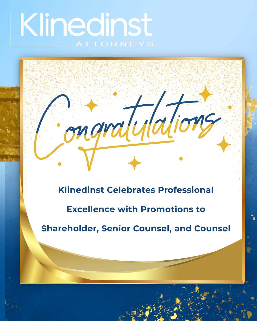 Each promotion represents not only individual accomplishment, but also the collaborative culture that drives Klinedinst PC forward. Our attorneys consistently deliver exceptional results for clients across complex litigation and transactional matters, and their advancement reflects the trust placed in them by clients and colleagues alike.