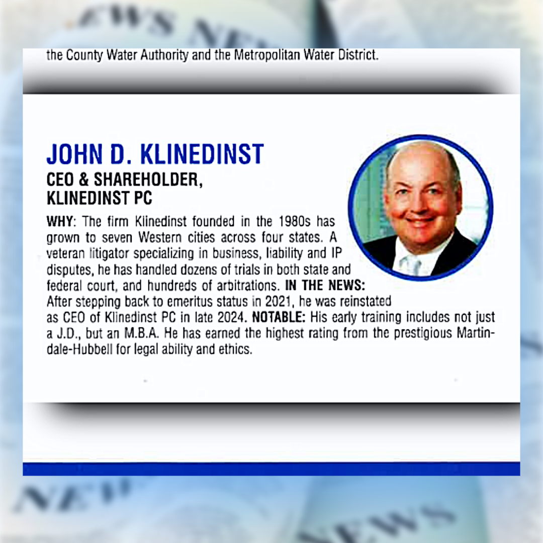 SAN DIEGO, CA – Klinedinst PC Shareholder and CEO, John D. Klinedinst, has been named a 2025 SD500 “Icon” by the San Diego Business Journal.